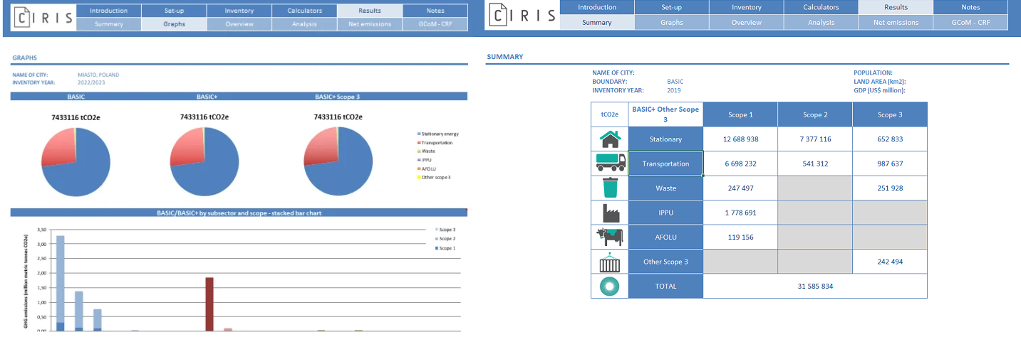 Kalkulator CIRIS (City Inventory Reporting and Information System) to bezpłatne, proste w użyciu i oparte na programie Excel narzędzie, które ułatwia przygotowanie kompleksowej inwentaryzacji emisji gazów cieplarnianych, a także obliczanie i raportowanie śladu węglowego zgodnie z Protokołem GPC w sposób rzetelny, porównywalny i spójny.